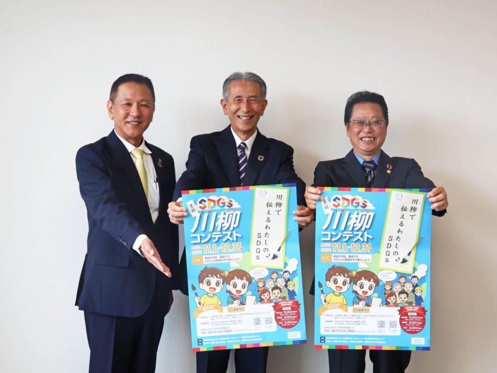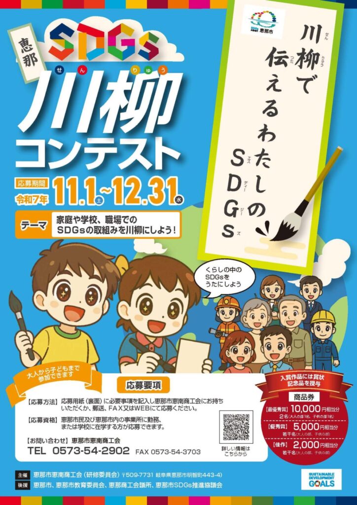SDGsを身近に感じてもらうことを目的に、17の目標にちなんだ川柳を広く募集する「SDGs川柳コンテスト」が11月1日から始まります。開催に先立ち、10月14日、恵那市SDGs推進協議会会員で主催者である市恵南商工会の役員らがPRのために市役所を訪れました。恵那市SDGs推進協議会も後援しています。